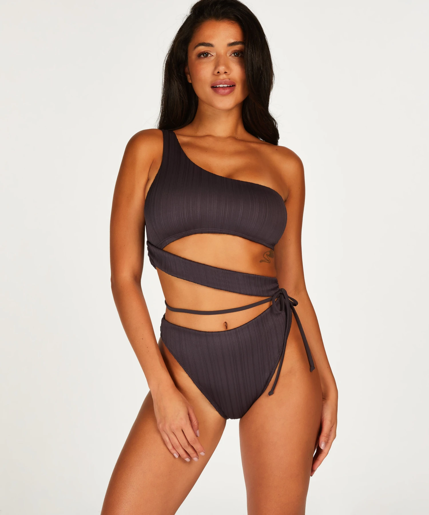 Zeig dich am Strand mit diesem super kreativen Badeanzug! Mit vielen ausgeschnittenen Details, die die Taille einhüllen. Zusammen mit einem One-Shoulder-Look und zusätzlichen Riemchendetails. Natürlich ist er doppelt gefüttert. Kombiniere ihn mit einem Kimono, um den Look zu vervollständigen!