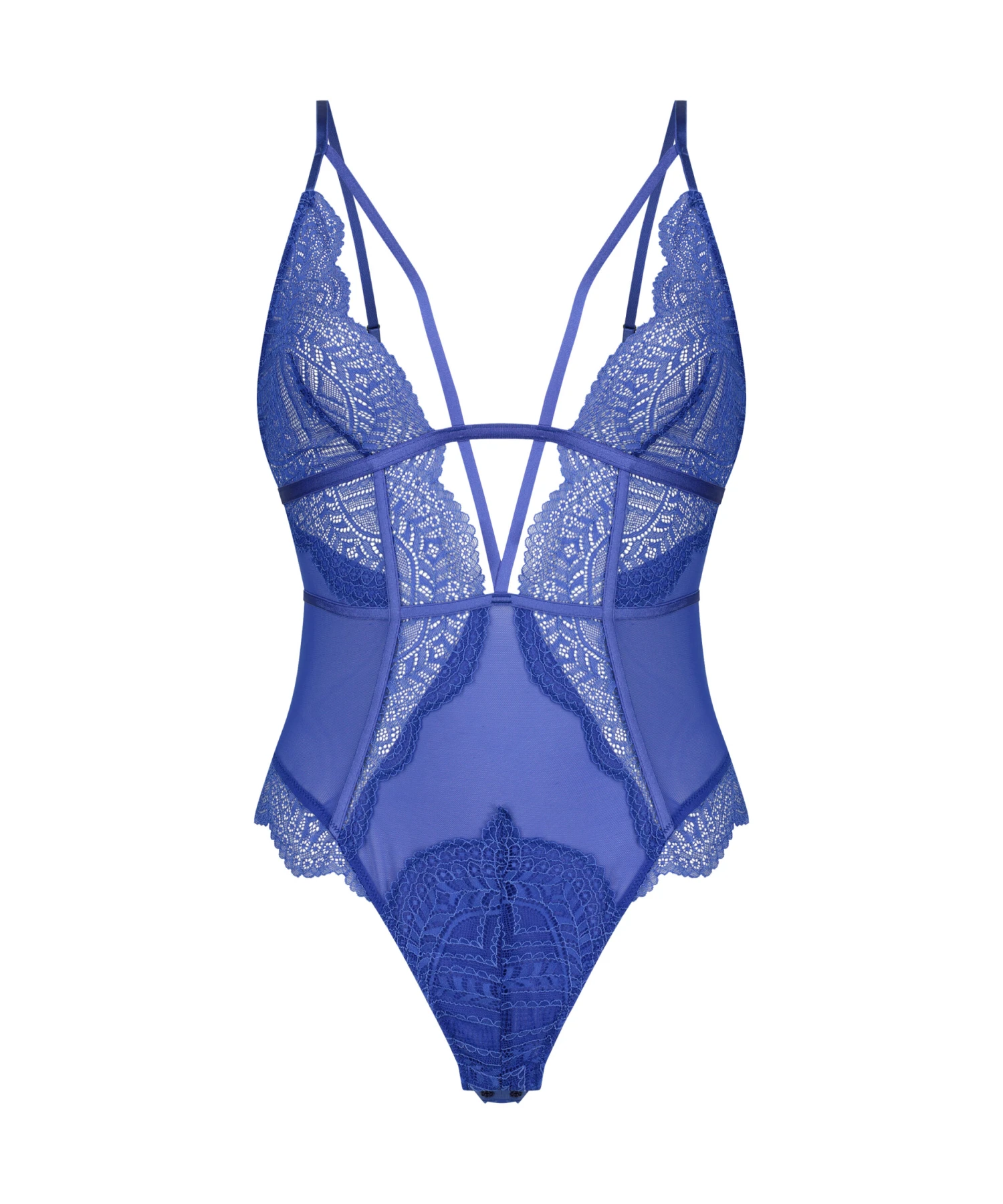 Fühle dich fantastisch in diesem unwattiertem Body! Er ist halbtransparent, mit vielen Spitzenverzierungen. Auf der Vorder- und Rückseite befinden sich Cut-Out-Details und sexy Riemchendetails. Kombiniere ihn mit einem Kimono für einen kompletten Look!
