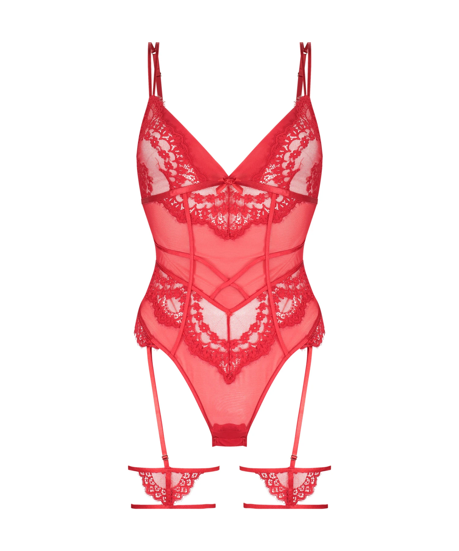 Fühle dich sexy in diesem atemberaubenden Body! Er ist komplett transparent gehalten mit viel Spitze vorn und an den Körbchen. Mit den verstellbaren Trägern erzielst du die perfekte Passform! Die Stäbchen vorn sorgen für den Miederlook. Veredelt mit einem sexy Strumpfband aus Spitze mit Riemchendetails. Kombiniere ihn mit einem Kimono für einen kompletten Look!