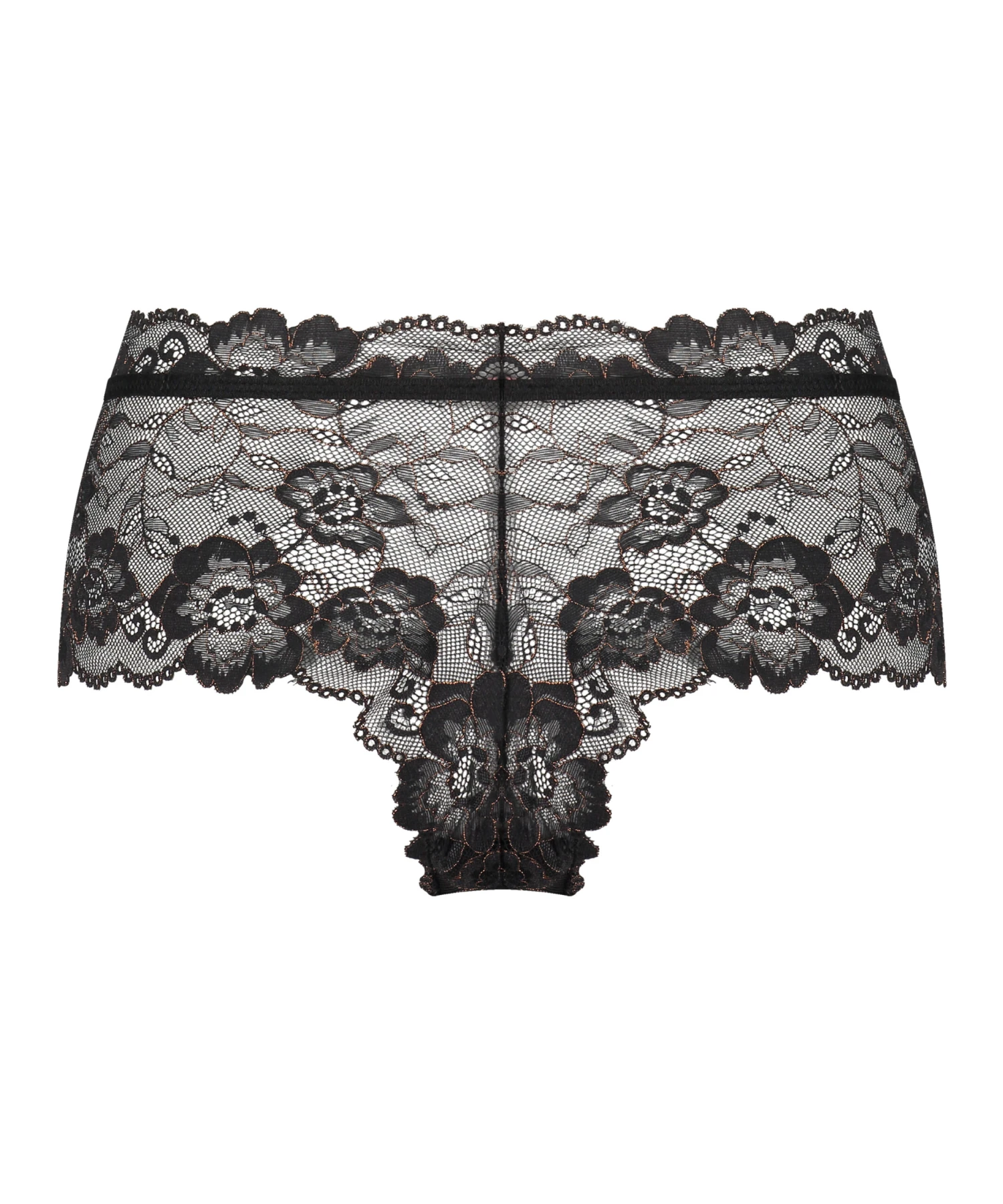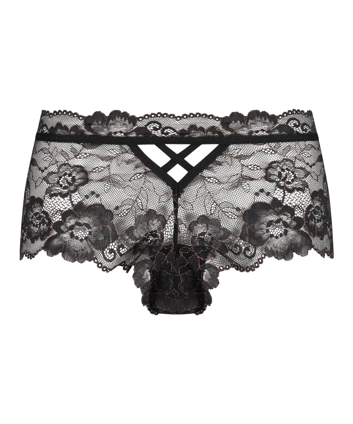 Fühlen Sie sich sexy und bequem mit diesem Boxer! Mit durchgehend halbtransparenter Optik und vielen Spitzendetails. Ergänzt mit extra heißen Ausschnitten auf der Vorderseite und Riemchendetails. Mischen und kombinieren Sie es mit einem BH, um das Set zu vervollständigen!