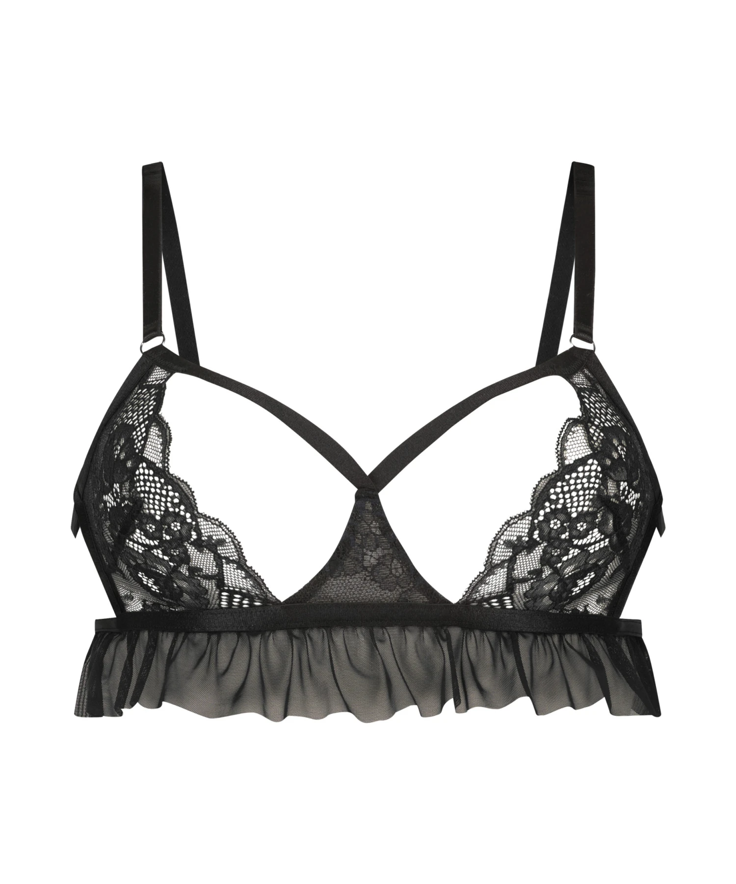 Kreiere mit diesem Bralette einen gewagten Look! Er ist mit Spitze, Mesh und Riemchen-Details versehen. Kombiniere ihn mit dazu passenden Teilen zu einem kompletten Set. Teil der Private Kollektion.