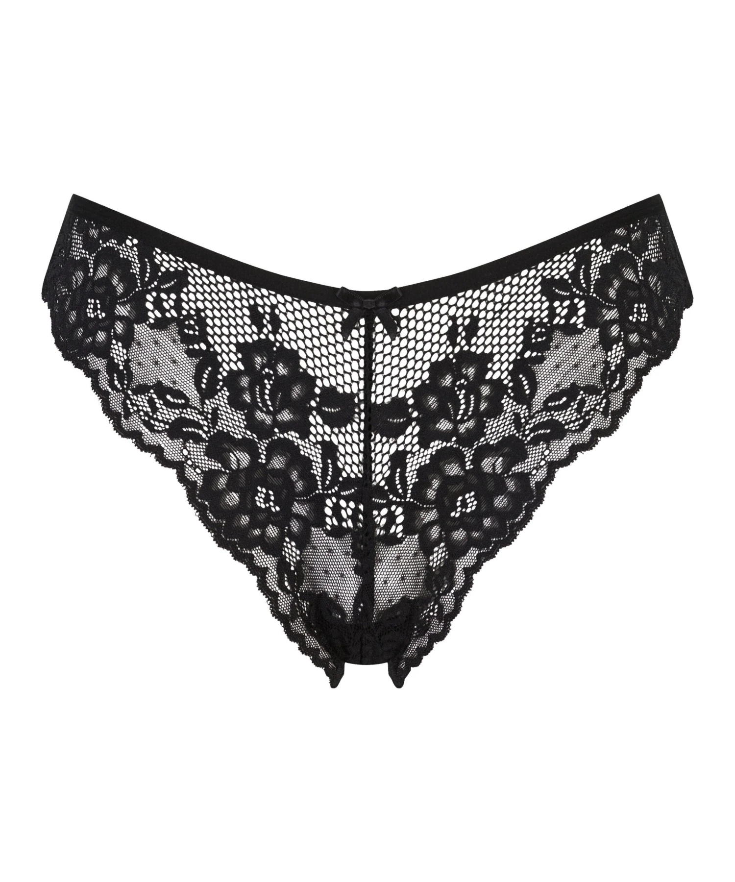 Dieser Brazilian ist semitransparent und mit viel Spitze besetzt. Die kleine Schleife auf der Vorderseite rundet den Brazilian perfekt ab!