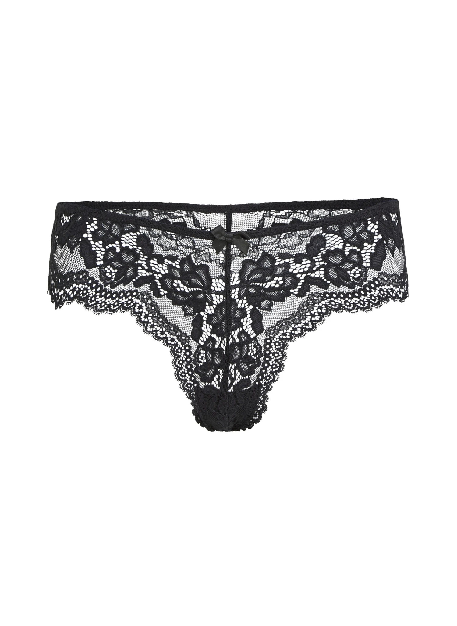 Fühle dich sexy in diesem Brazilian! Der Brazilian ist ganz mit Spitze verziert und hat als zusätzliches Detail eine Schleife an der Vorderseite. Mit einem passenden BH zu einem kompletten Set kombinierbar!