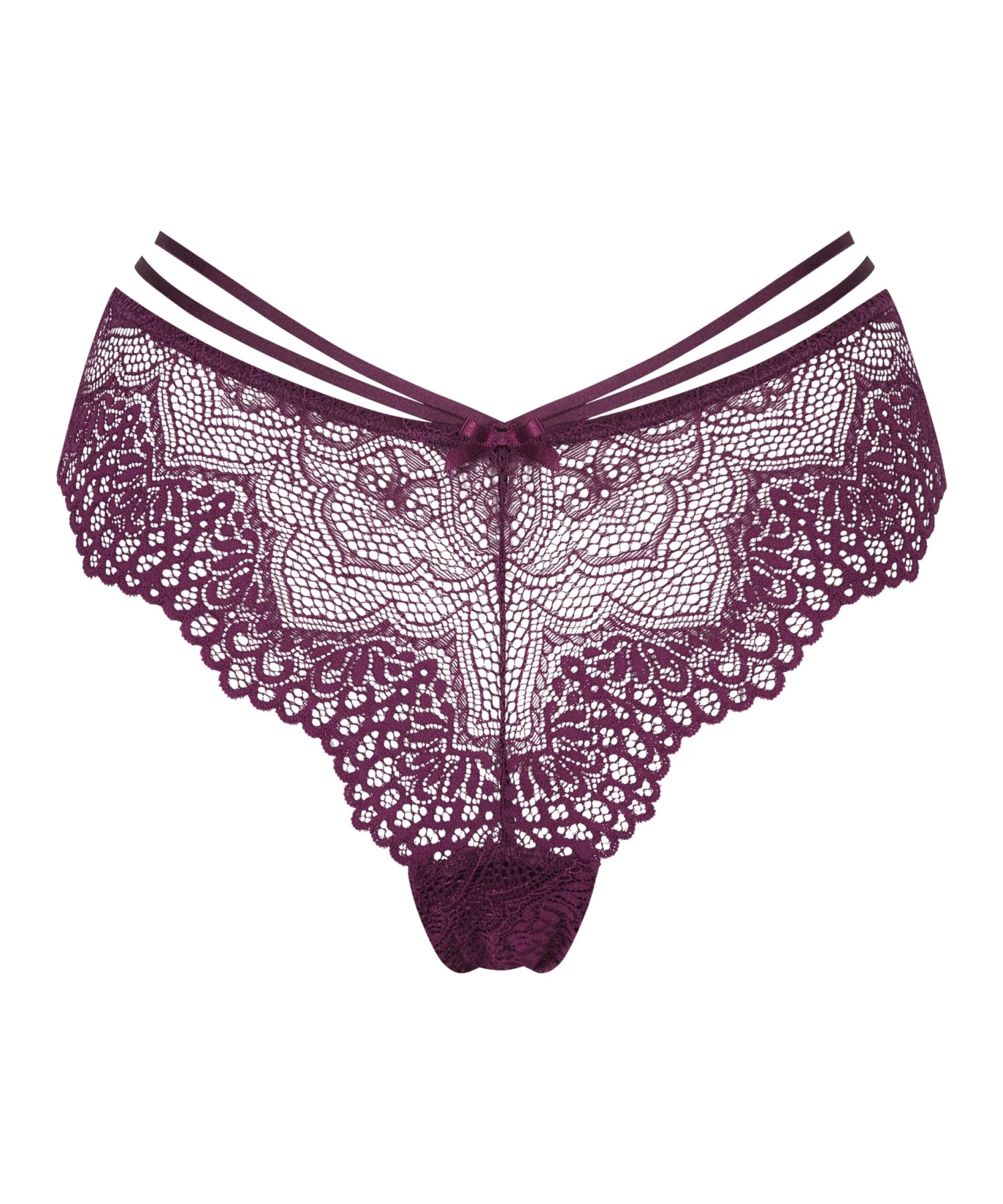 Vervollständige deinen Look mit diesem schönen Brazilian! Er ist fast vollständig aus Spitze gefertigt und hat Riemchendetails und eine süße Schleife auf der Vorderseite. Kombiniere ihn mit einem schönen BH!