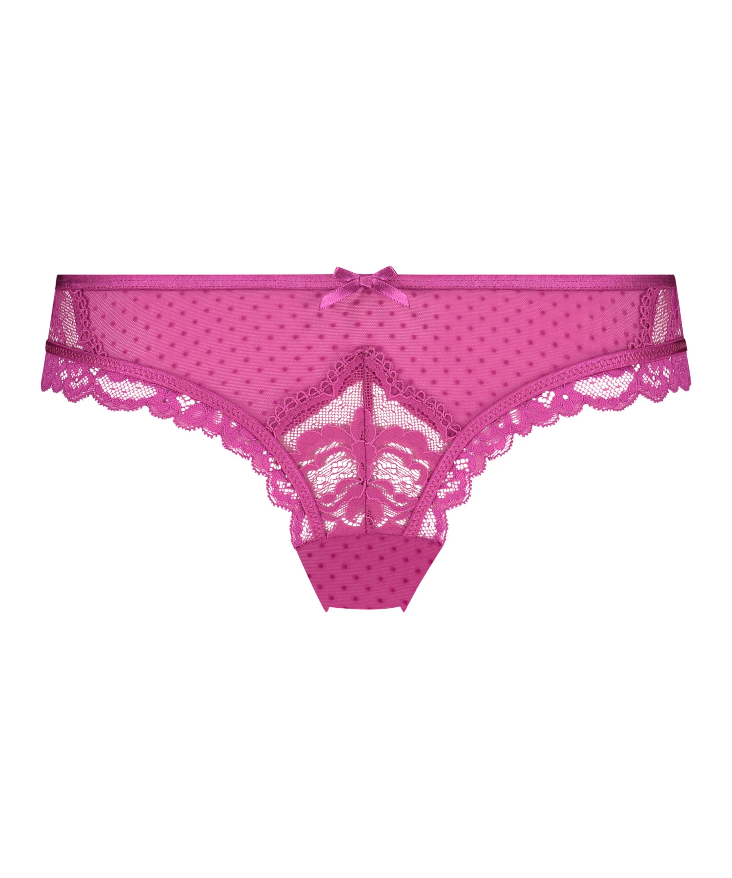 Dieser Brazilian ist ein absolutes Must-have in deiner Kollektion! Er ist aus Spitze und Mesh gefertigt und zeigt eine süße Schleife auf der Vorderseite. Kombiniere ihn mit einem schönen BH in derselben Farbe!