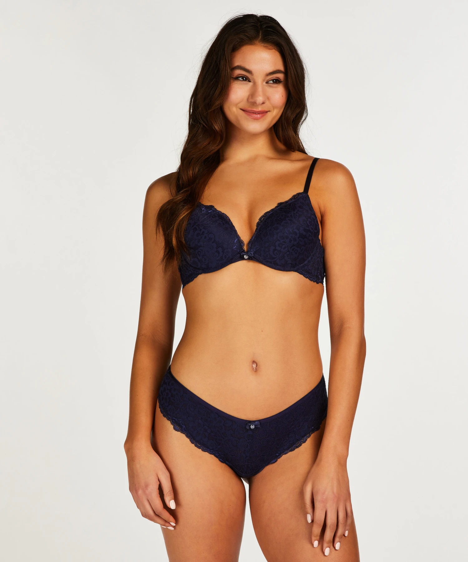 Dieser Brazilian ist ganz und gar mit Spitze besetzt. Also supersexy! In der Mitte ist er mit einer kleinen Schleife verziert. Vervollständige Deinen Look, indem Du ihn mit dem passenden BH kombinierst.