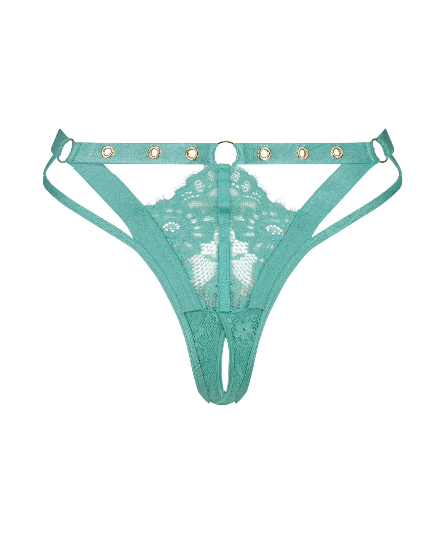 Dieser süße und unschuldig aussehende Brazilian ist alles andere als das! Er hat Strappy Details und besteht aus Spitze. Kombiniere ihn mit passenden BH aus der Private Collection, um dein Set zu vervollständigen!