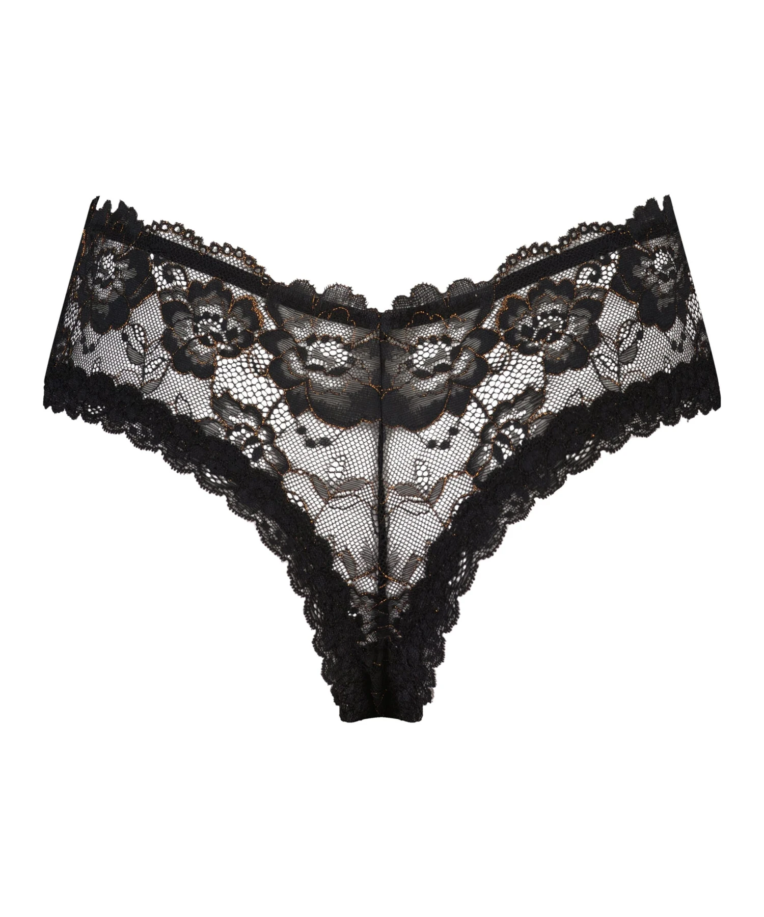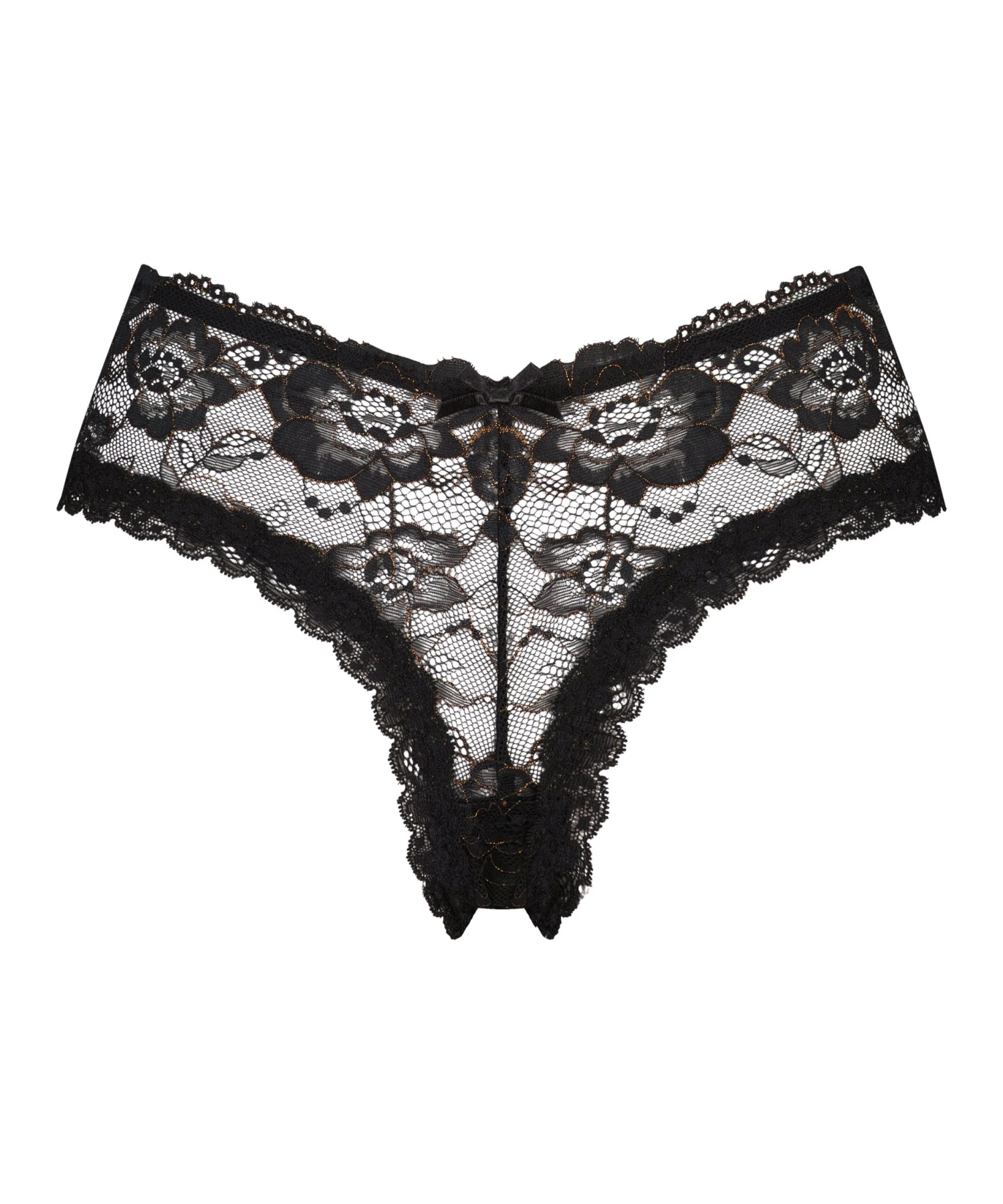 Fühl dich optimal mit diesem Brazilian! Mit seinem halbtransparenten Look und vielen Lurex-Spitzendetails vorne und hinten. Vollendet wird das Ganze mit einer süßen Schleife vorne. Kombiniere ihn mit einem perfekten BH!