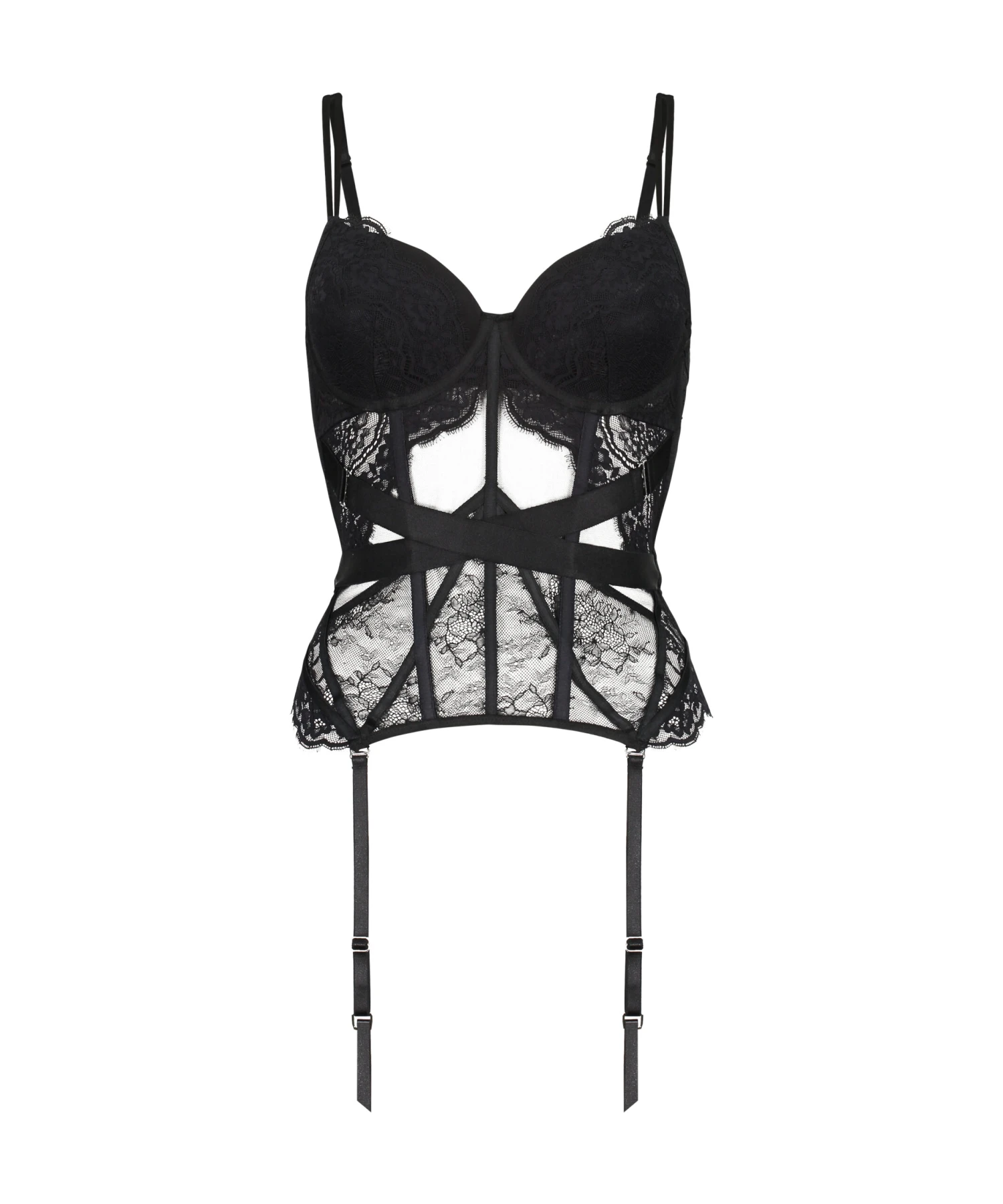Dieses sexy Bustier möchtest du nicht verpassen! Mit gepolsterten Körbchen für die bequeme Passform. Komplett mit Spitze und Riemchendetails verziert. Der Gesamtlook ist halbtransparent für ein super sexy Gefühl. Mit vorderen und seitlichen Stäbchen für den perfekten Miederlook. Ergänzt mit verstellbaren Strumpfhaltern für jeden Bedarf. Finde den dazu passenden Slip, um das Set zu vervollständigen!