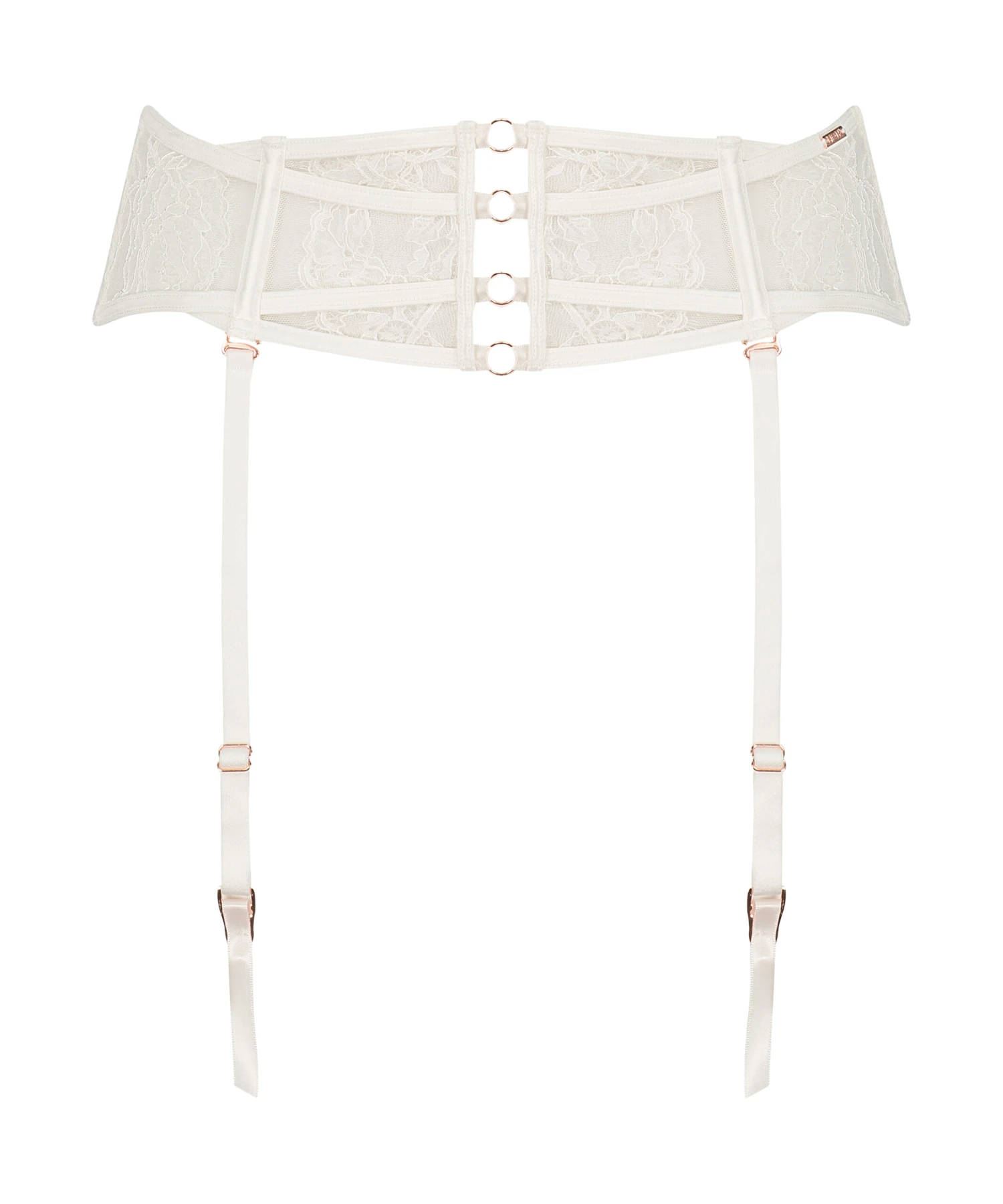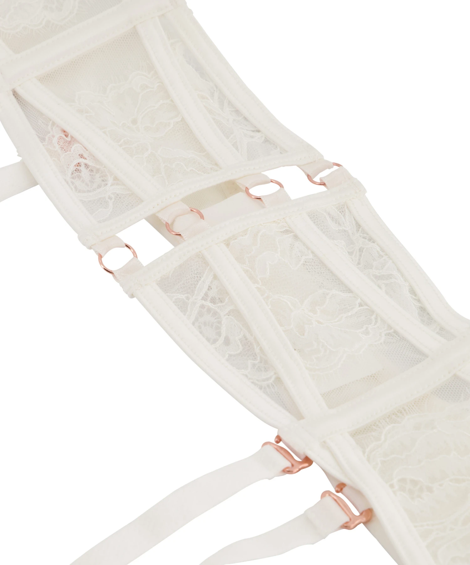 Ergänze dein sexy Dessous-Set mit diesen Strumpfhaltern! Reich verziert mit extravaganter Spitze. Viele Riemchendetails sowie Stäbchen vorn und an der Seite für maximale Unterstützung. Viel sexy und dennoch edle Hardware, die dem Look Pep verleiht. Die verstellbaren Suspender Cuffs sind ebenfalls abnehmbar.