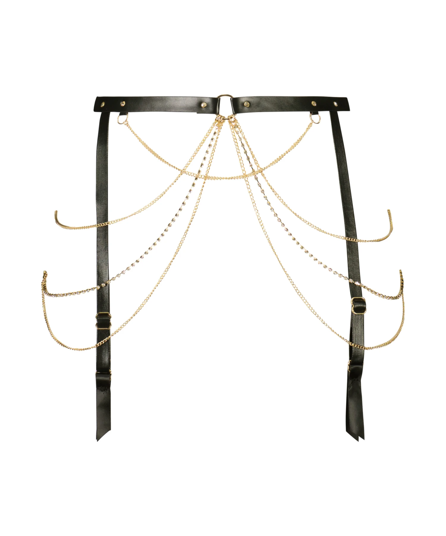 Setzen Sie mit diesem Ketten-Strapsgürtel auf einen sexy Look! Es hat viele Riemchendetails und Ketten. Es hat Hosenträger, die mit Strumpfwaren kombiniert werden können. Finden Sie das passende Set!