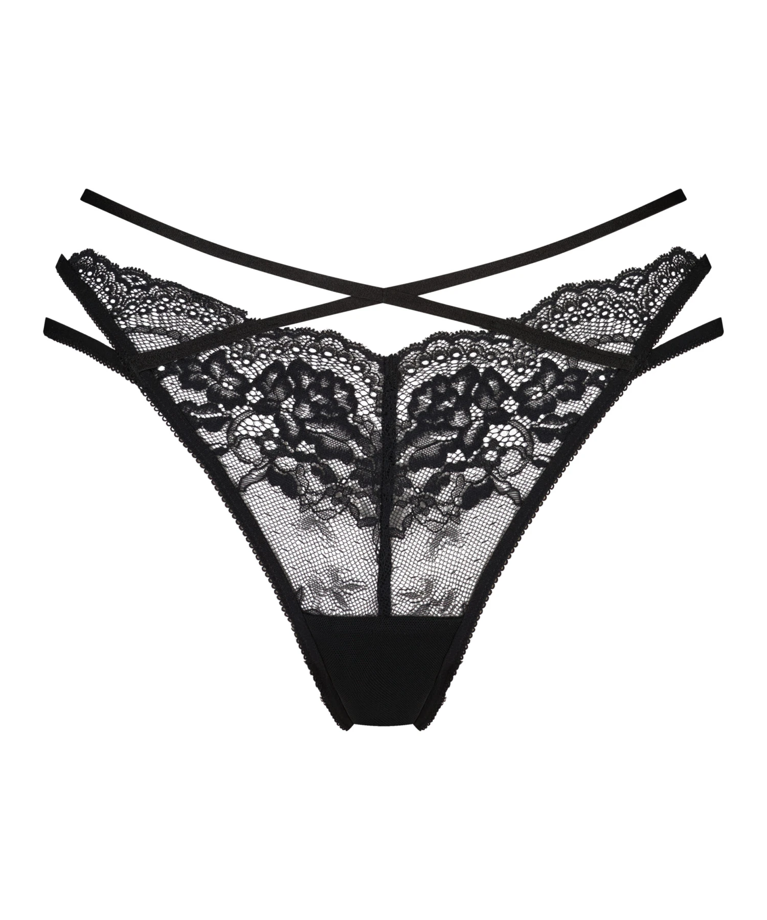 Dieser String ist das stylishe Highlight Deiner Dessous-Kollektion! Die Riemchen-Details verleihen ihm ein ultra-sexy Flair, das durch den eleganten Akzent der Spitze ergänzt wird. Kombiniere ihn mit einem passenden BH oder Bralette.
