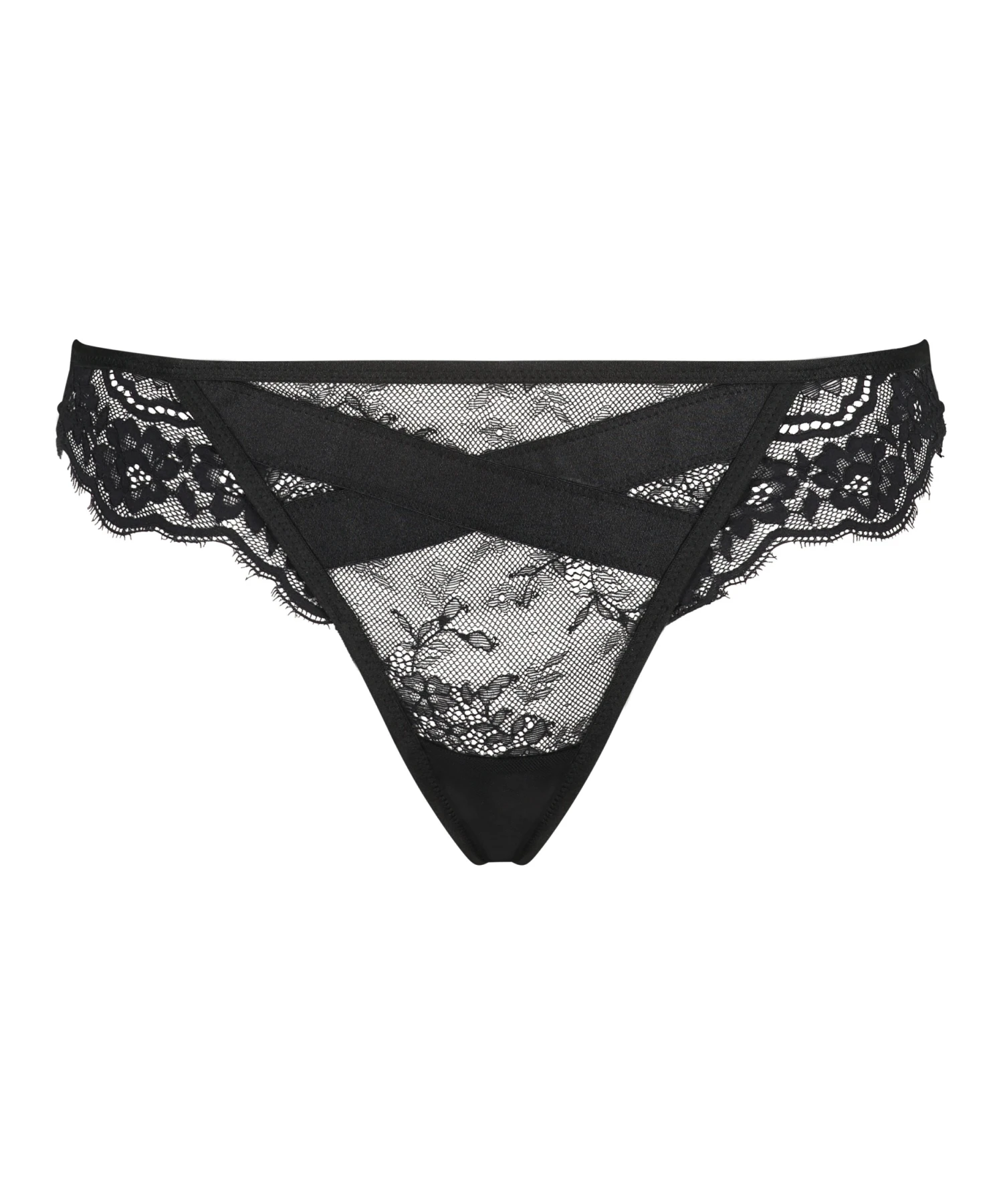 Fühl dich supersexy in diesem Tanga! Mit einem durchgehenden halbtransparenten Look mit sexy Spitzenstickereien. Breite Riemchendetails auf der Vorderseite. Finde das dazu passende Oberteil, um das Set zu vervollständigen!