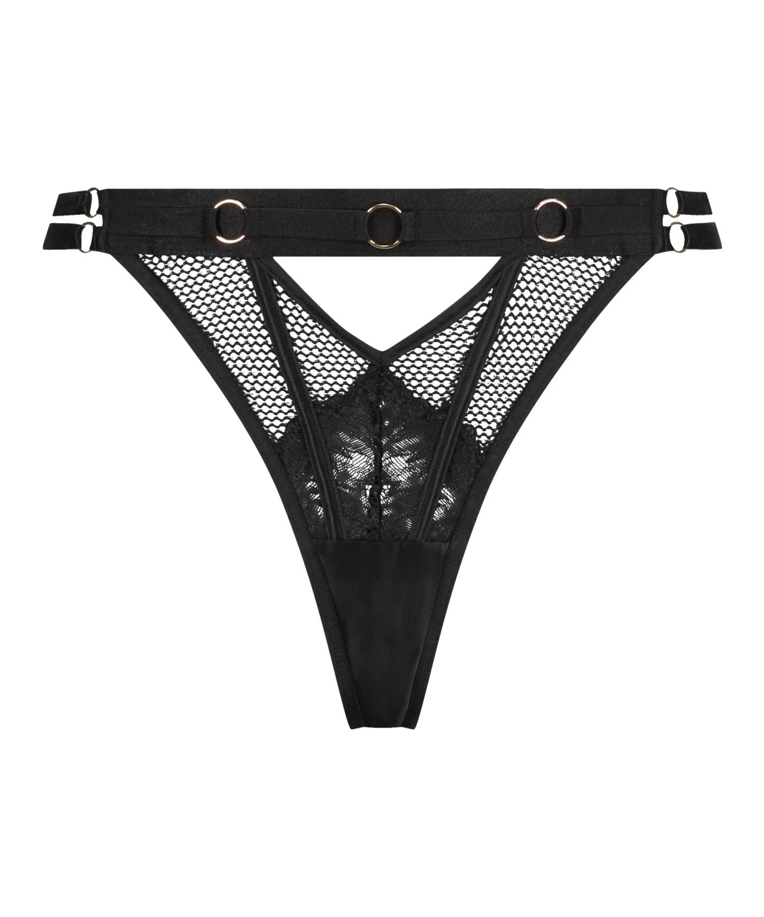 Bring die Dinge mit diesem super sexy String auf die nächste Ebene! Hergestellt aus Netzmaterial, verziert mit Spitze und Riemchendetails für einen pikanten Look. Cutout-Details auf der Vorder- und Rückseite, zusammen mit Hardware auf einem breiten Band. Finde das Bustier und vervollständige den Look!