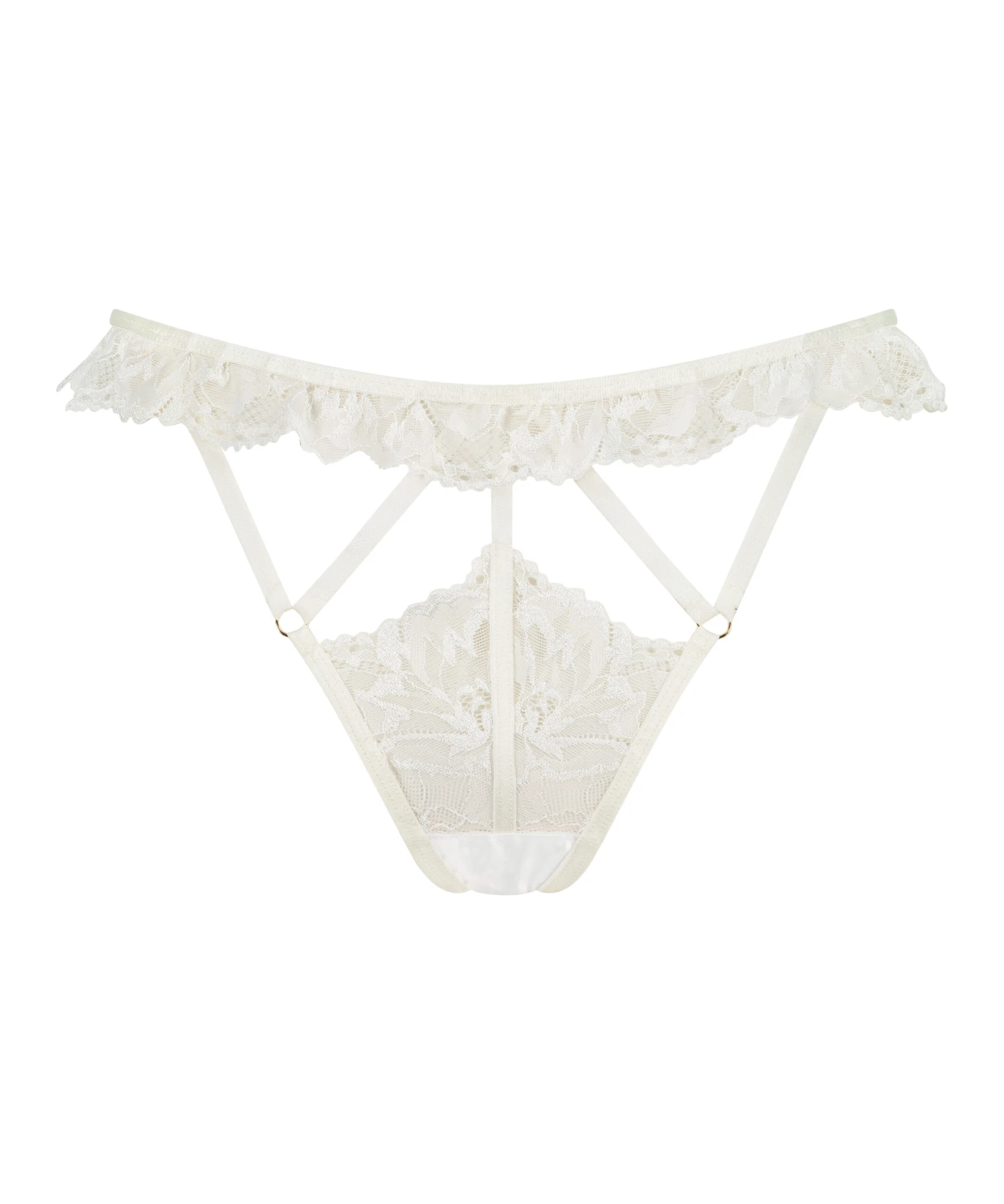 Dieser String ist ein Hingucker!Mit einem Look von Spitze überall vorne und hinten, mit vielen Riemchen und Cut-out-Details.Ergänze das Set mit einem passenden BH!