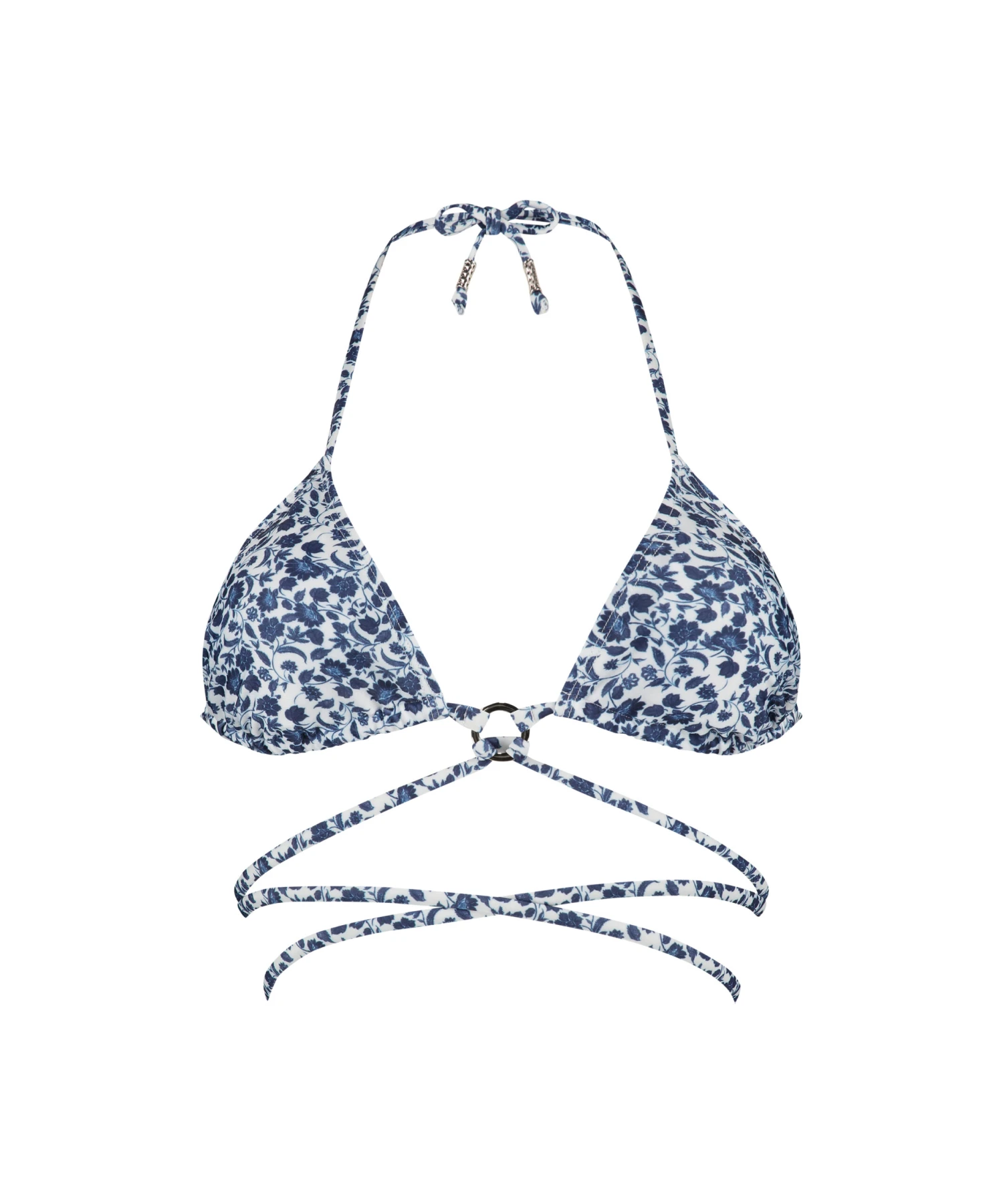 Stiehl die Show mit diesem fantastischen gepolsterten Triangel-Oberteil! Dank Bindeverschluss an Hals und Rücken komplett anpassbar an deinen Körper. Verziert mit hübscher Hardware und Riemchendetails, die deine Taille umschmeicheln. Finde dazu passende Unterteile, um den Look zu vervollständigen!