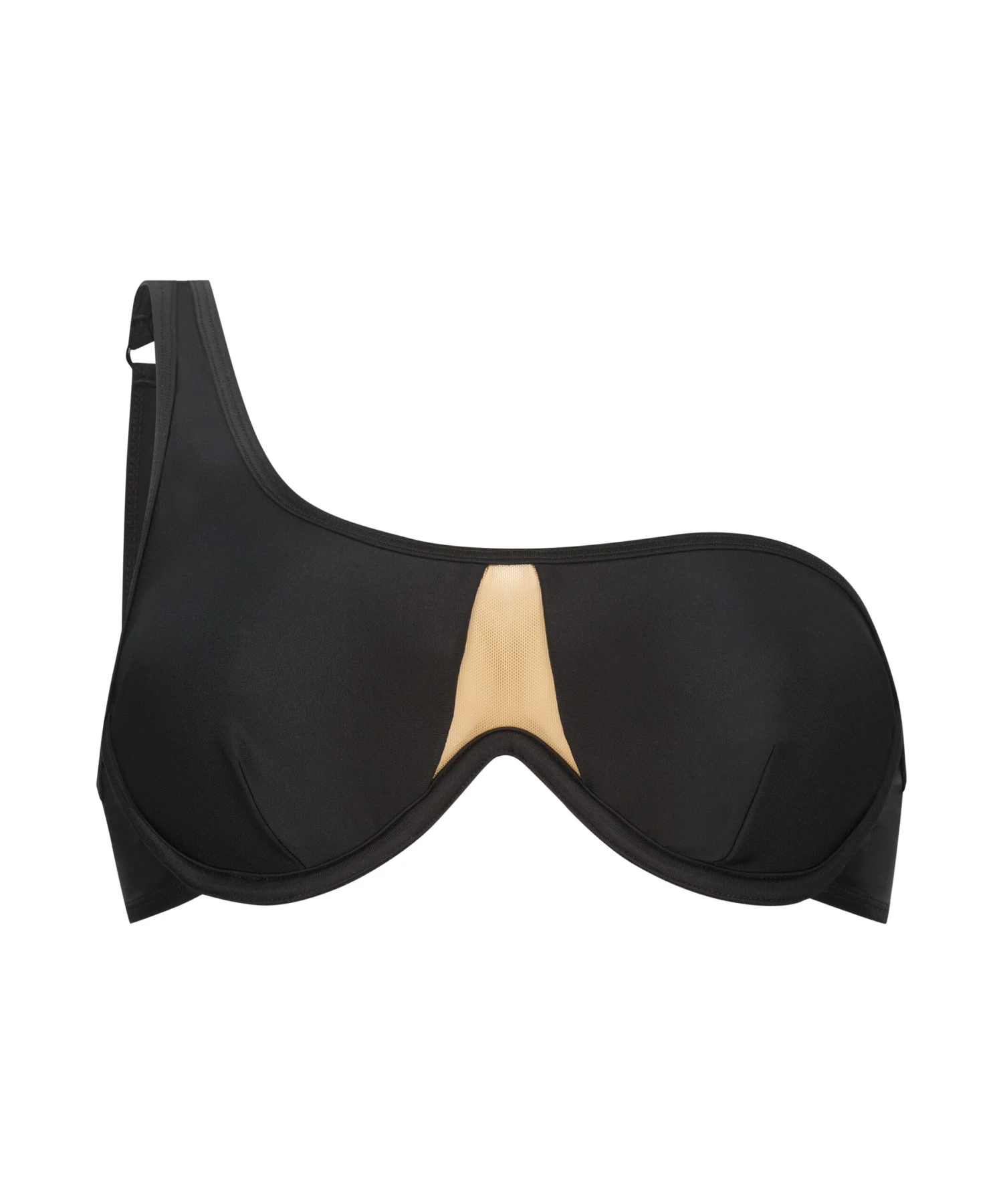 Mit diesem Bikinioberteil fällst du auf! Mit einem One-Shoulder-Look und Mesh-Details zwischen den Körbchen. Die Bügelstütze sorgt für eine schöne Form. Finde das passende Unterteil, um den Look zu vervollständigen!