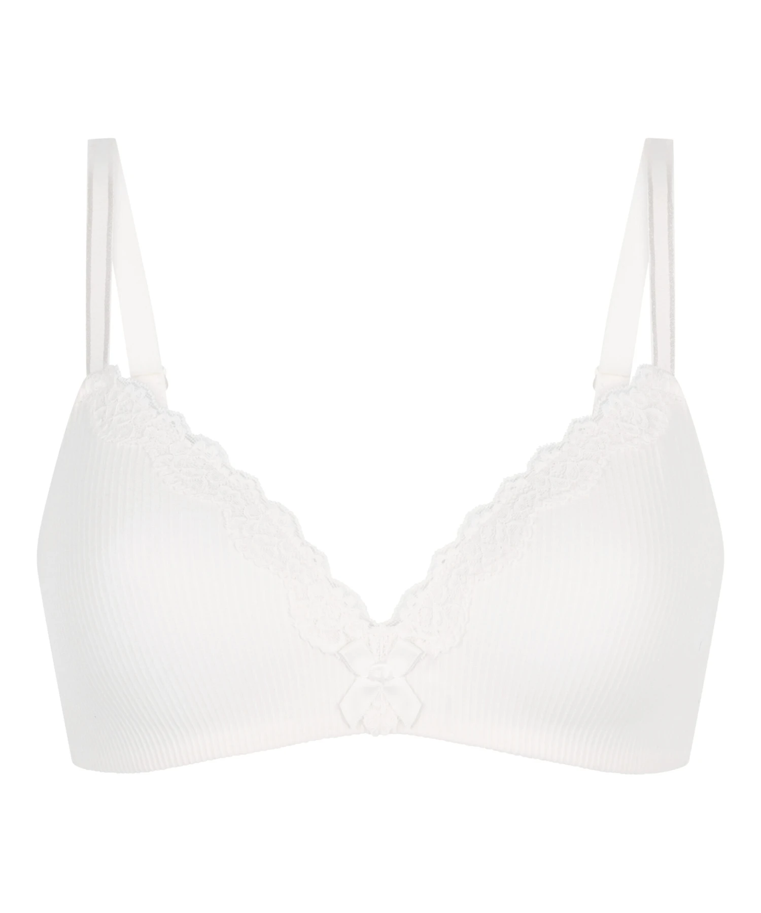 Ein hübscher BH mit einem schönen Spitzenbesatz und einer süßen Schleife vorne. Der BH ist vorgeformt und hat keine Bügel. Kombiniere ihn mit einem passenden Slip.